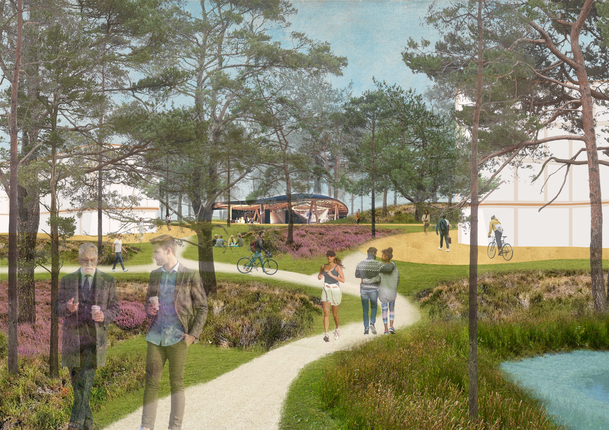 Het unieke groene karakter van de Emmerdennen loopt door in de campus. Een groene route voor fietsers en voetgangers loopt dwars door het gebied. Ook komt er nieuwe aanplant en herkenbare voorzieningen. Zo ontstaat een levendige en duurzame campusomgeving waar ontmoeten en samenwerken centraal staan.
